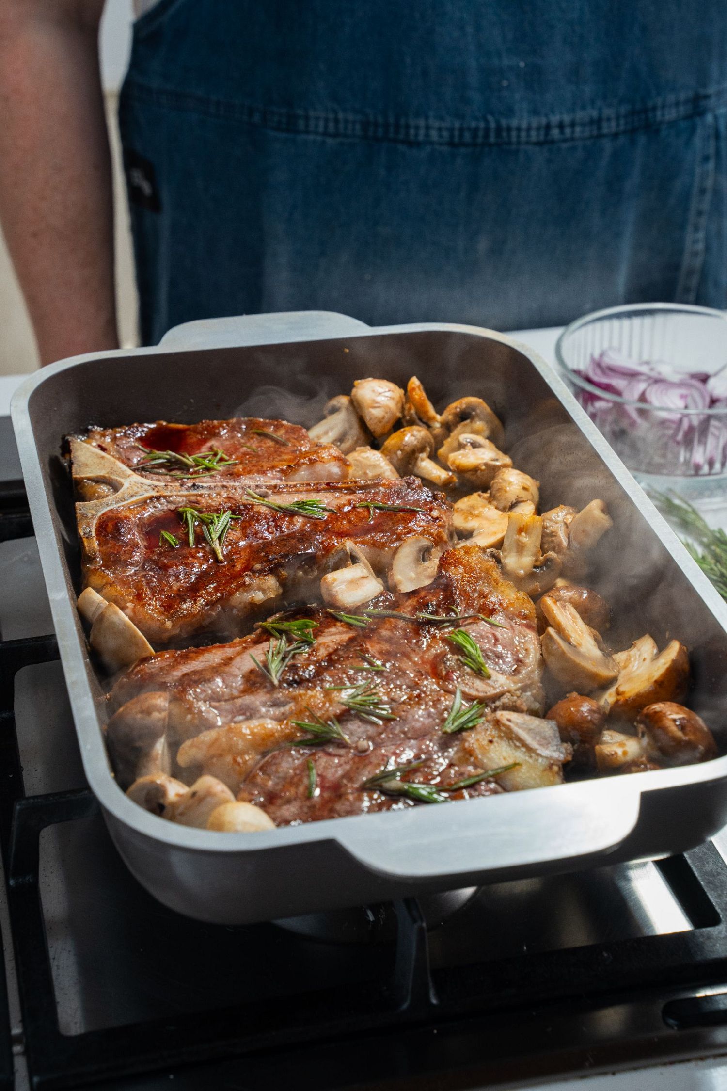 Con recubrimiento cerámico bicapa y asas fundidas, garantiza durabilidad, cocción pareja y fácil limpieza. Ideal para carnes, vegetales y más, con paredes altas que reducen salpicaduras.