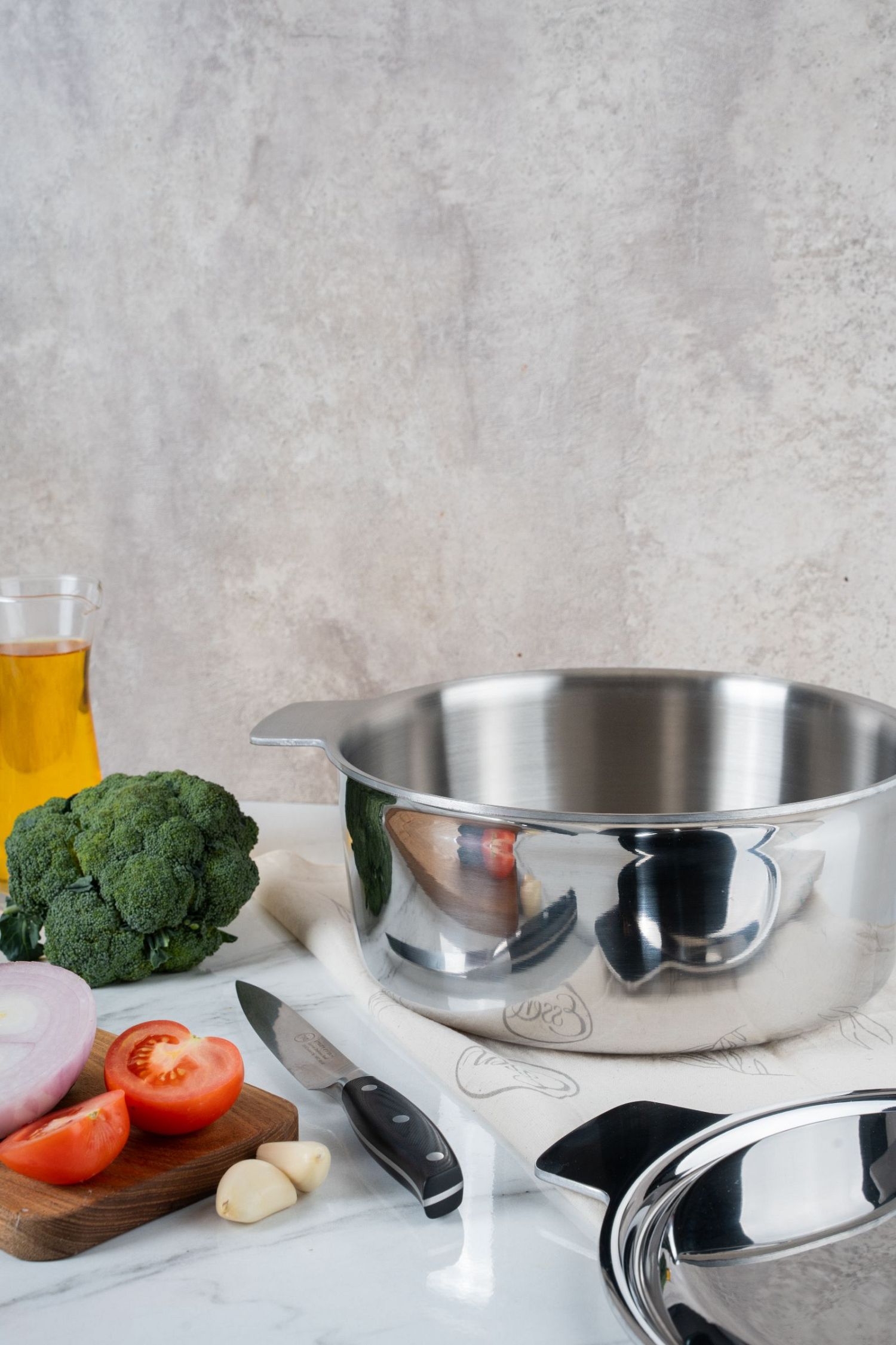 Cuerpo de acero y corazón de aluminio: la Cacerola Fusión de 24 cm combina diseño, resistencia y alto rendimiento.