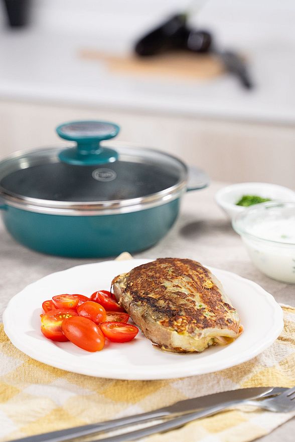 Su cuerpo de aluminio con antiadherente tricapa y cierre perfecto conserva sabores y texturas. Apta para cocinas a gas, vitro y eléctricas.