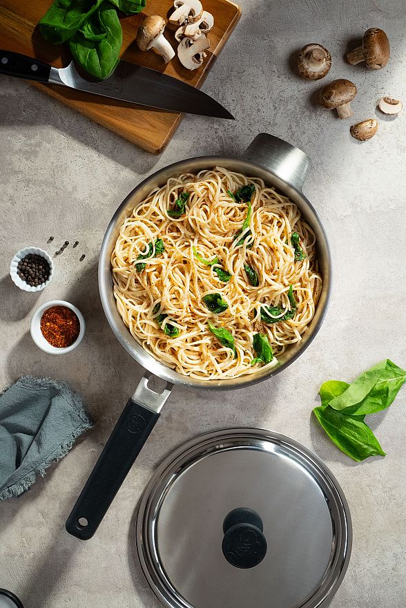 Apta para todo tipo de cocina, incluida inducción, y con un diseño elegante de acabado espejo, esta sartén es el equilibrio perfecto entre rendimiento, estética y durabilidad.